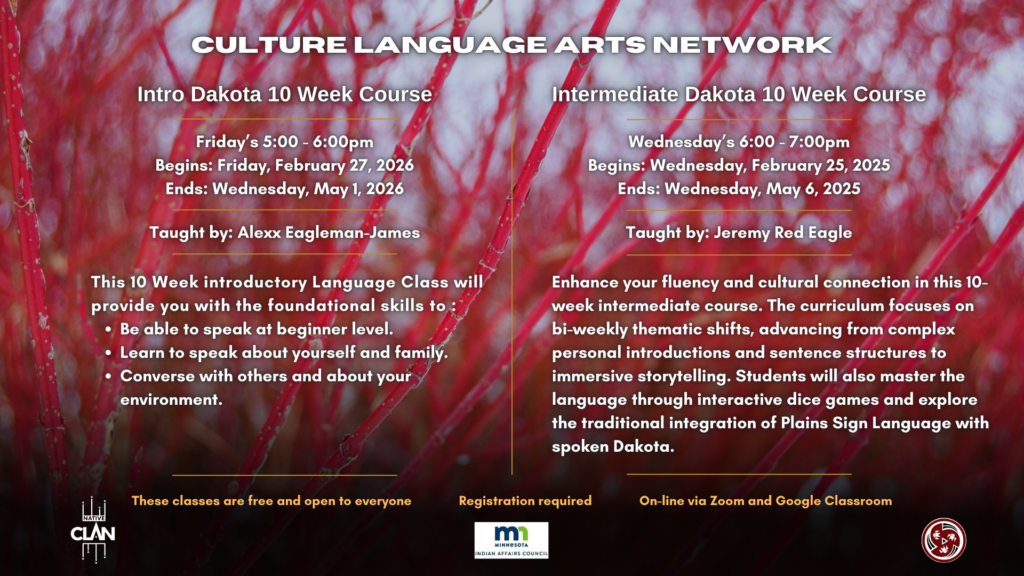 CLAN offers a 10-week intermediate Dakota language course that focuses on enhancing fluency and cultural connection.