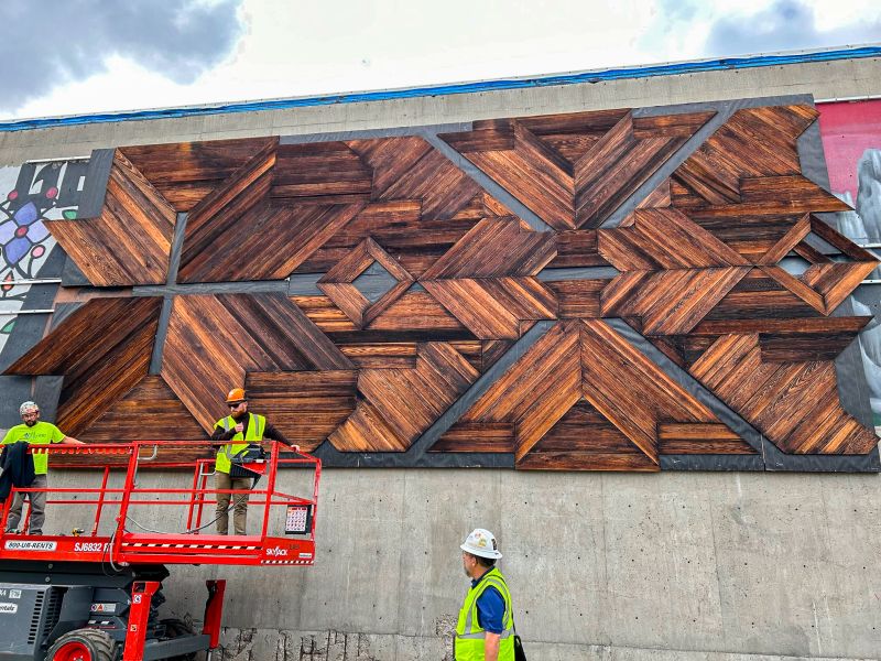 The mural’s home is outside so that it can be accessible to everyone. Restoration work was done on the piece during the center’s renovation and expansion in 2022-2024. The mural was carefully taken apart and sent to Montana, where each piece was cleaned and restored. The mural was then reinstalled on the eastern exterior wall of the center, so that it can continue being a destination for years to come. The restoration work was supported by a generous anonymous $30,000 donation.